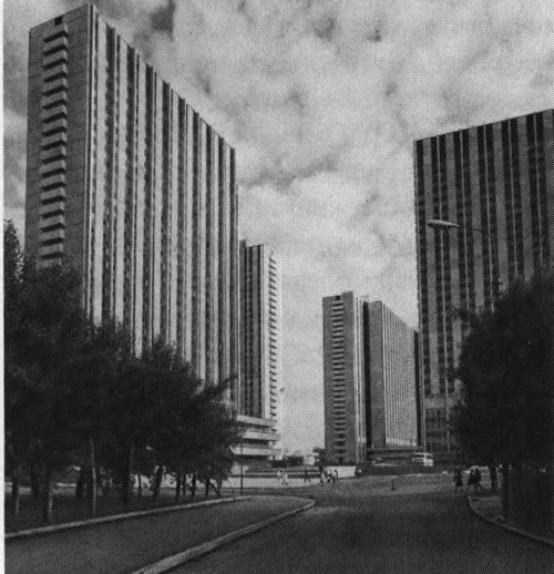 Жилая группа состояла из восемнадцати 16-этажных домов. Они сгруппированы в шесть групп по 3 здания в каждой, образуя замкнутое внутреннее пространство.
