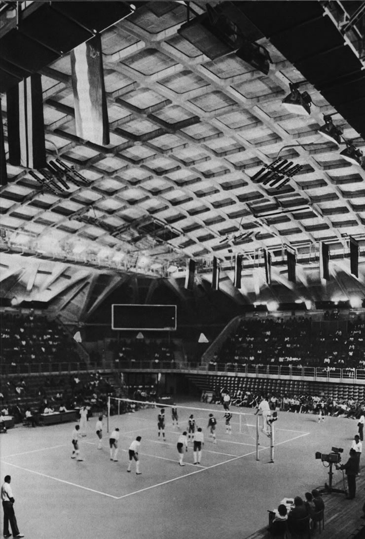 Помимо существующих спортивных сооружений, на территории Центрального стадиона имени В.И.Ленина в Лужниках появились и новые. На берегу Москвы-реки построен Универсальный спортивный зал, рассчитанный, в зависимости от вида соревнований, на 1500-3000 зрителей. Это уникальное сооружение из железобетона представляет собой огромный пологий купол пролетом 88 м, опирающийся на 28 мощных складчатых опор. Помимо Центрального демонстрационного зала размером 42 х 42 метра действуют четыре тренировочных зала размером 18 х 36 метров каждый, с обслуживающими помещениями, пресс-центром, помещениями для работников радио, телевидения, судейско-информационными службами, двумя фойе и гардеробными для зрителей.